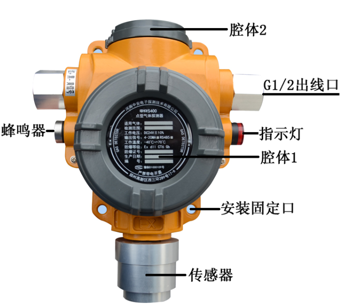 通常,气体密度小于空气,探头的位置应在可能发生泄漏现象的区域上方;如气体密度大于空气,探头应安装在地面、坑道或地槽中;和空气密度相近的气体,由于气流和通风设备等因素,容易和空气一同流动。此种情况下,探头放置高度应尽可能靠近现场人员的工作空间(呼吸区域)。当然,某些气体也存在特殊情况。例如二氧化碳常压下略轻于空气,将它突然释放到大气层中,会导致温度下降,其结果是密度增加,实际上气体是沉降于地面上的。检测缺氧情况时,由于氧气密度略大于空气,必须考虑到置换问题。例如:氮气置换氧气,空气中的氧气将被逐渐耗尽,探头的安装位置则不是关键因素。另外,探头安装时要防止安装位置过低,要确保传感器不接触水或被灰尘污染、堵塞(如现场无法避免水和灰尘,应为探头安装专用的防尘防水帽)。